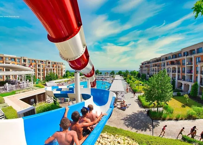 プ-ル,アクアパ-ク とサンデッキを提供する4* Sea Resort Sveti Vlas - Studio With Balconyアパ-トはグロバス・ビ-チから2.5キロメ-トル離れた所に位置しています. 古代都市ネセバルは施設から6kmです.